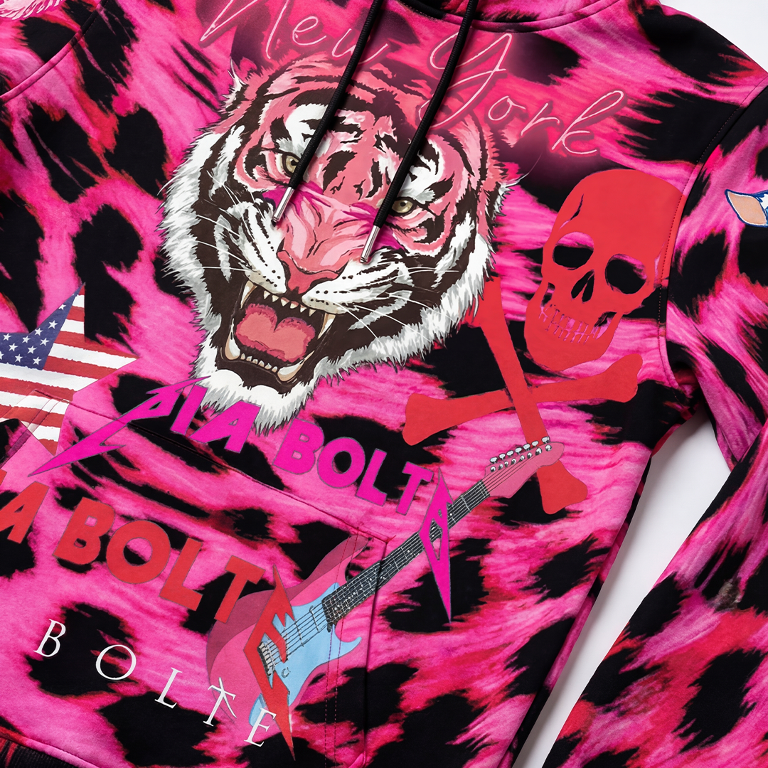 Der PIA BOLTE® Statement Hoodie – Leo Pink Edition vereint einen intensiven Leo-Allover-Print in Neon Pinkmit ikonischen PIA BOLTE® Signature-Elementen. Ausdrucksstark, rebellisch und selbstbewusst – ein Look, der sofort Präsenz zeigt und die unverkennbare PIA BOLTE® DNA trägt.