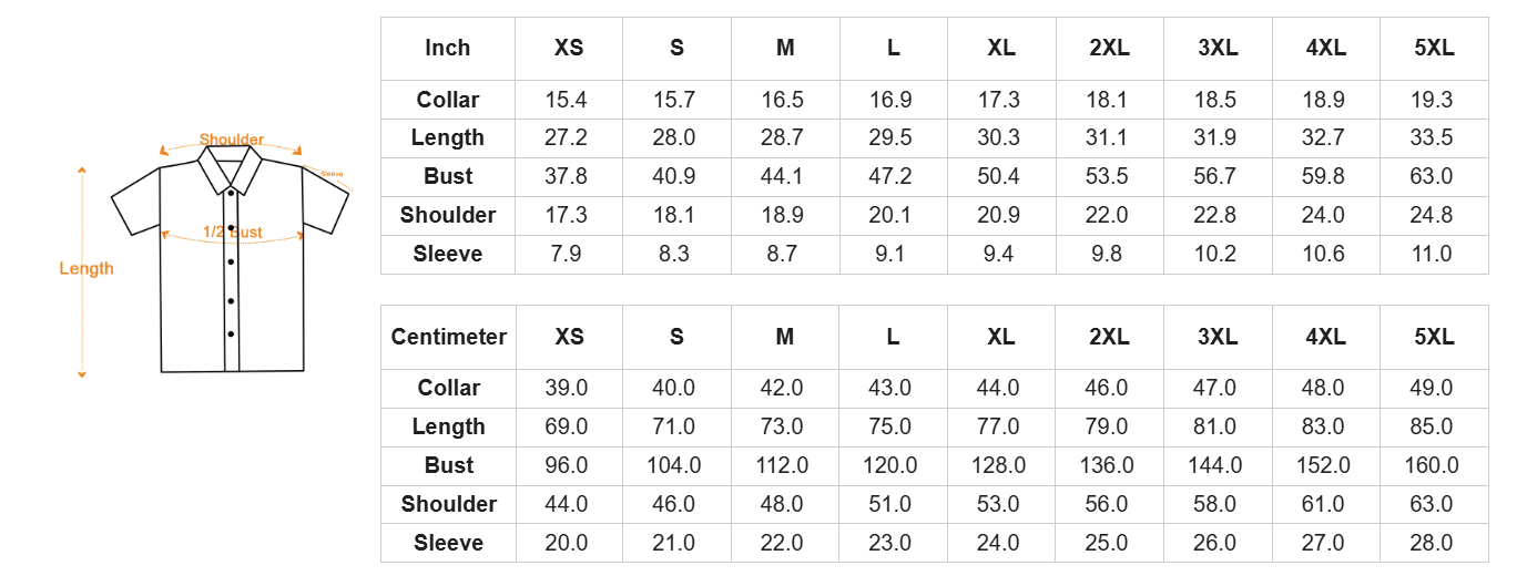 size: XS, S, M, L, XL, 2XL, 3XL, 4XL, 5XL