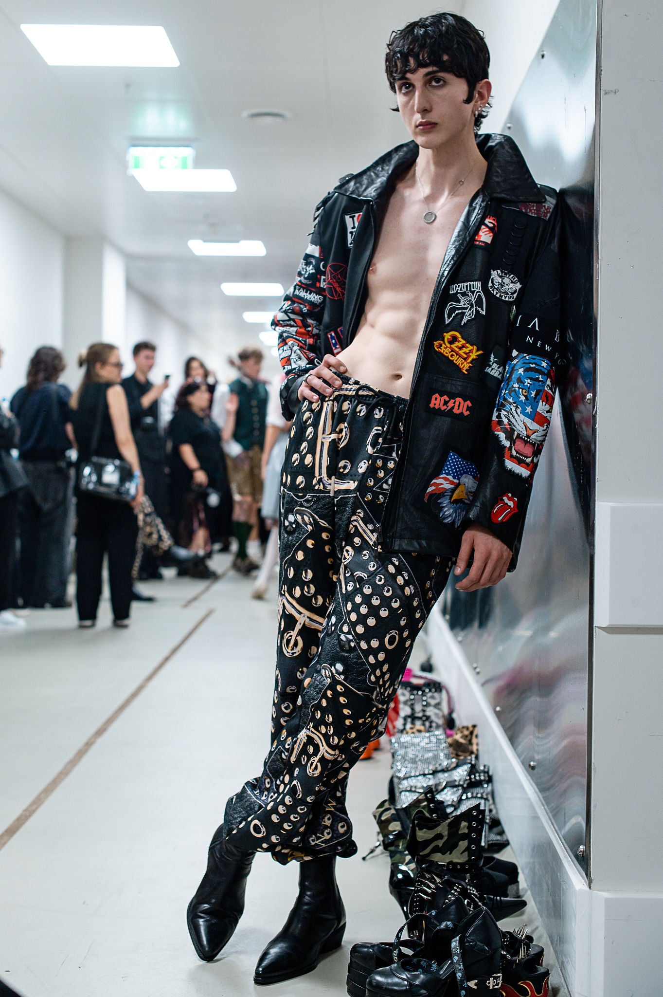 Die PIA BOLTE® Hose – Denim in Denim interpretiert Jeans-Ästhetik neu: Statt klassisch clean überzeugt sie mit einem aufwendigen Allover-Print aus Nieten, Gürtelschnallen und Denim-Details. Das Ergebnis ist ein einzigartiger Look, der Denim in einen rockigen Streetstyle verwandelt. Mit lockerem Schnitt, elastischem Bund und markanten Details wird die Hose zum ultimativen Statement-Piece für alle, die Individualität und Rebellion im Alltag tragen wollen.
