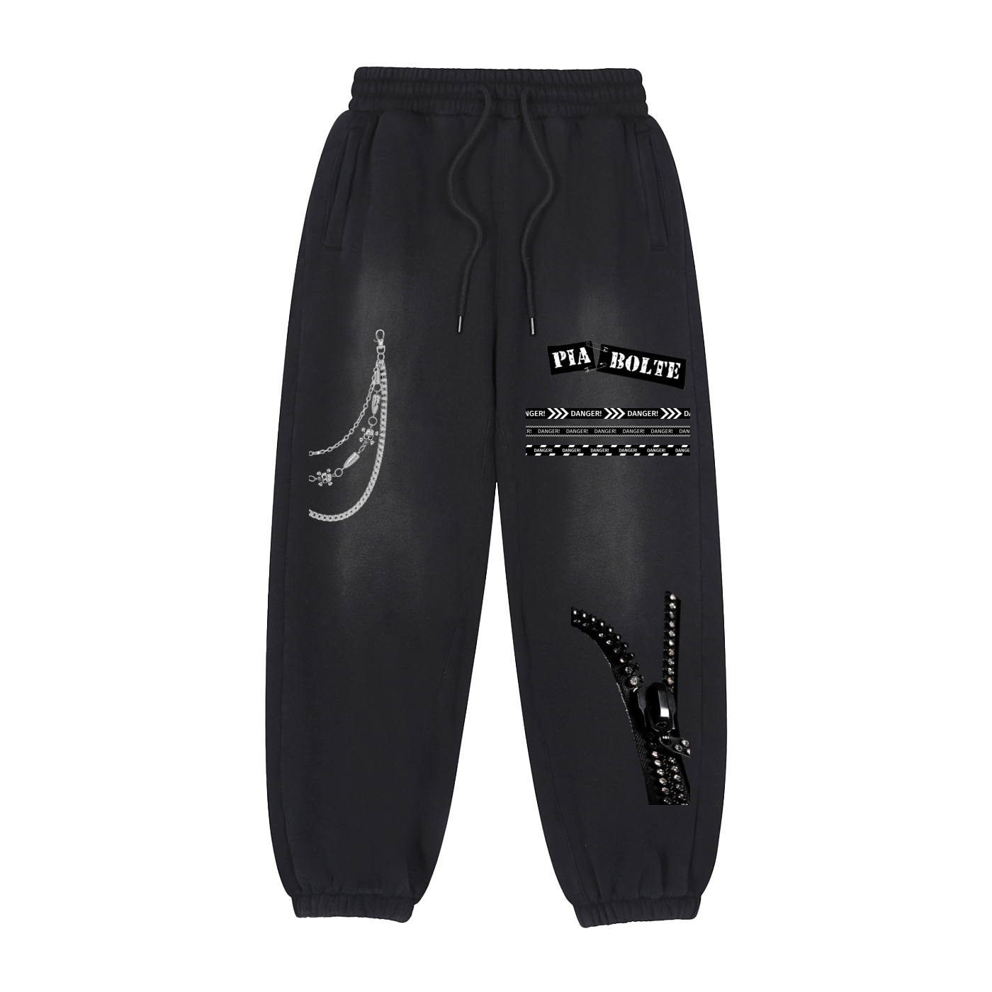 Die Wide Zip Jogger von PIA BOLTE® bringt rebellische Streetwear mit Couture-Attitüde auf ein neues Level. Schwarzer Grundton, markante Zipper-Details und plakative Prints verschmelzen zu einem Design, das Stärke, Energie und Individualität ausstrahlt.