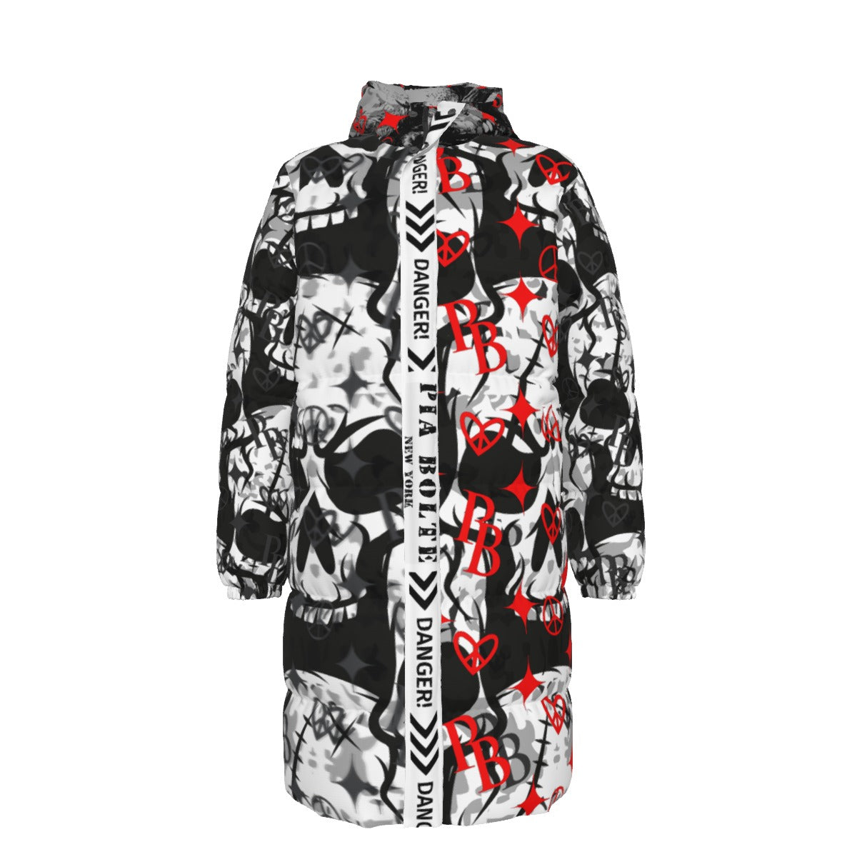 Der PIA BOLTE® Mantel – Black and White Death ist ein kompromissloses Statement-Piece für mutige Fashion-Lovers. In kontrastreichem Schwarz-Weiß gehalten, vereint er ikonische Skull-Prints mit auffälligen „Danger“-Elementen und typischen PIA BOLTE® Signature-Details. Die lange, warme Silhouette mit Kapuze sorgt für Komfort, während das provokante Design Rebellion, Stärke und künstlerischen Ausdruck transportiert. Ein Mantel, der nicht nur schützt, sondern deinen Auftritt unvergesslich macht.