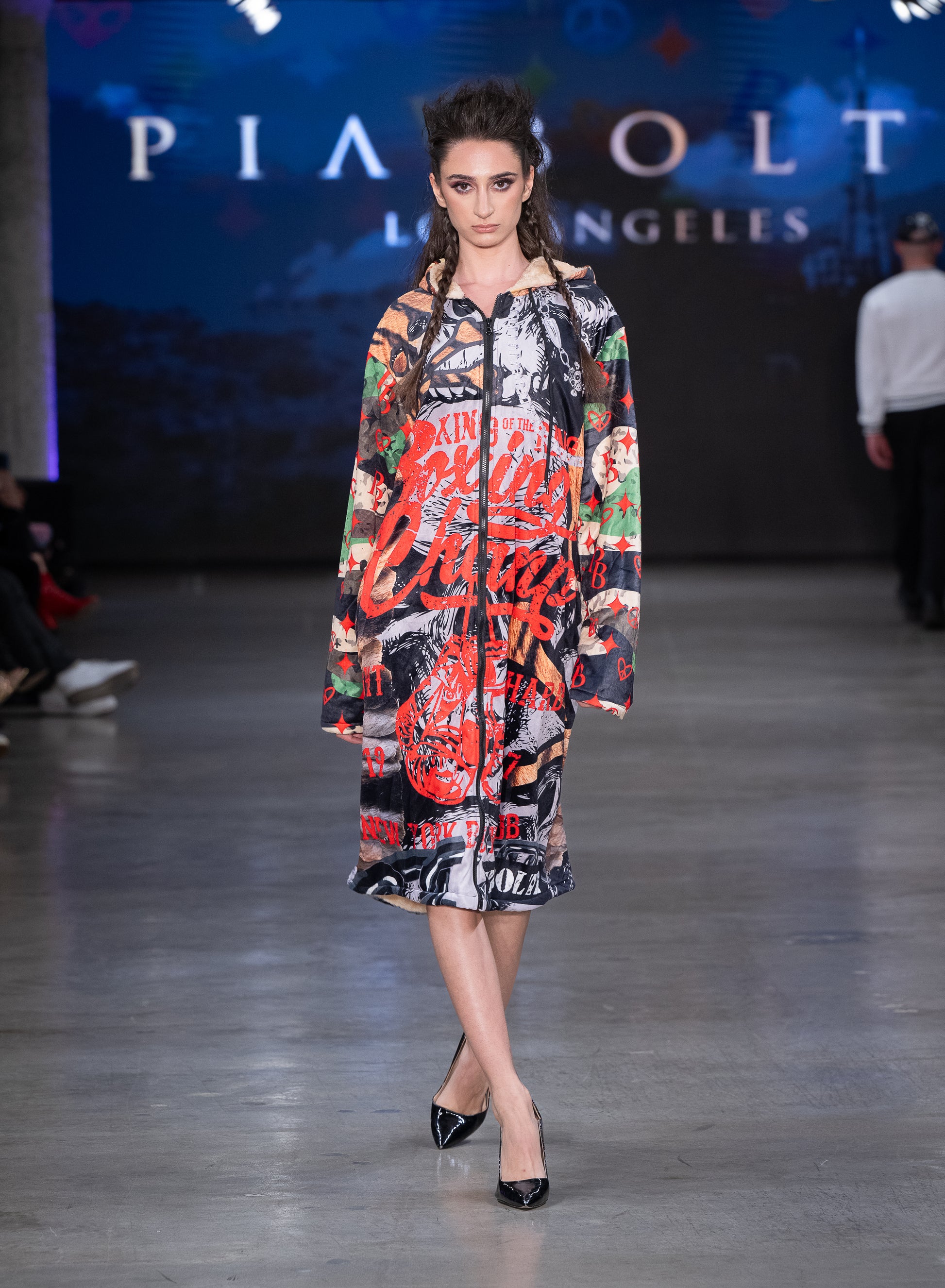 Der PIA BOLTE® Mantel – Jungle Hunter ist pure Power in Stoffform. Das auffällige Design mit wilden Prints, Camouflage-Details und kräftigem Rot-Schwarz-Kontrast steht für Stärke, Bewegung und Urban Attitude.