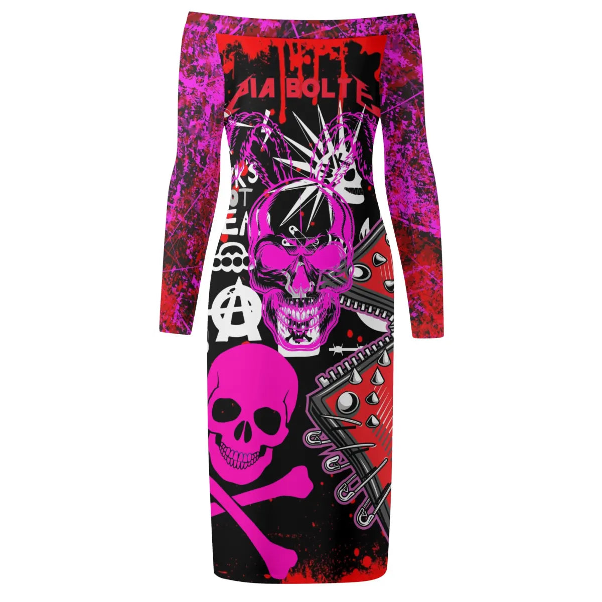 Its body-hugging pencil silhouette highlights feminine curves, while the asymmetric one-shoulder / off-shoulder design adds modern elegance with a rebellious edge.