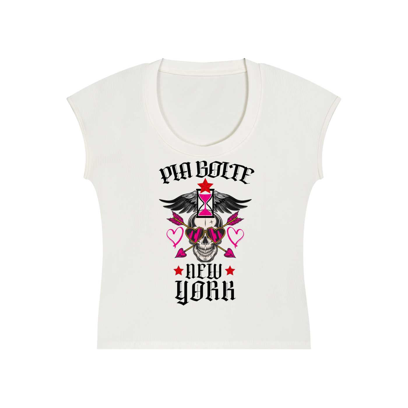 PIA BOLTE® T-Shirt - Flying Love Skull in weiß