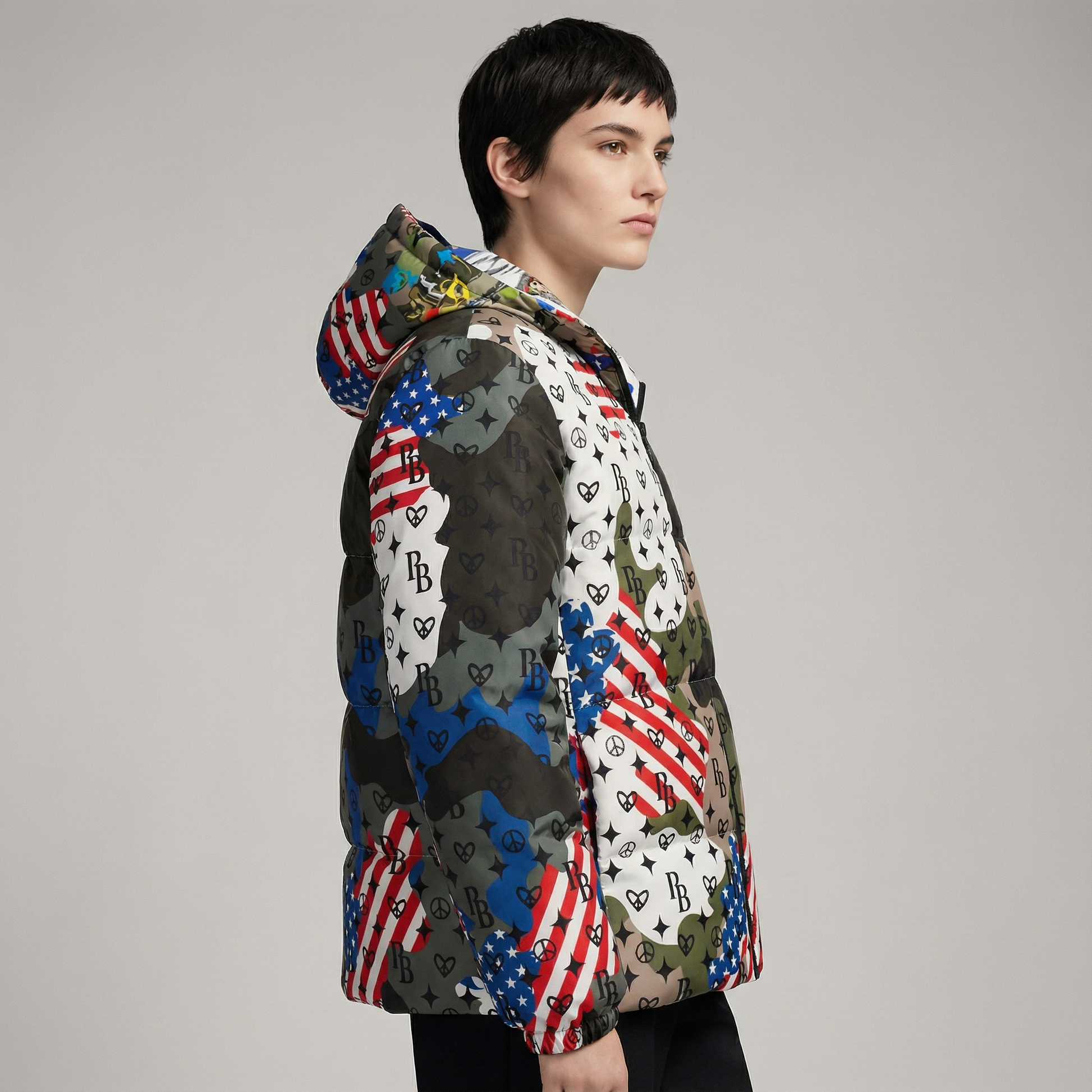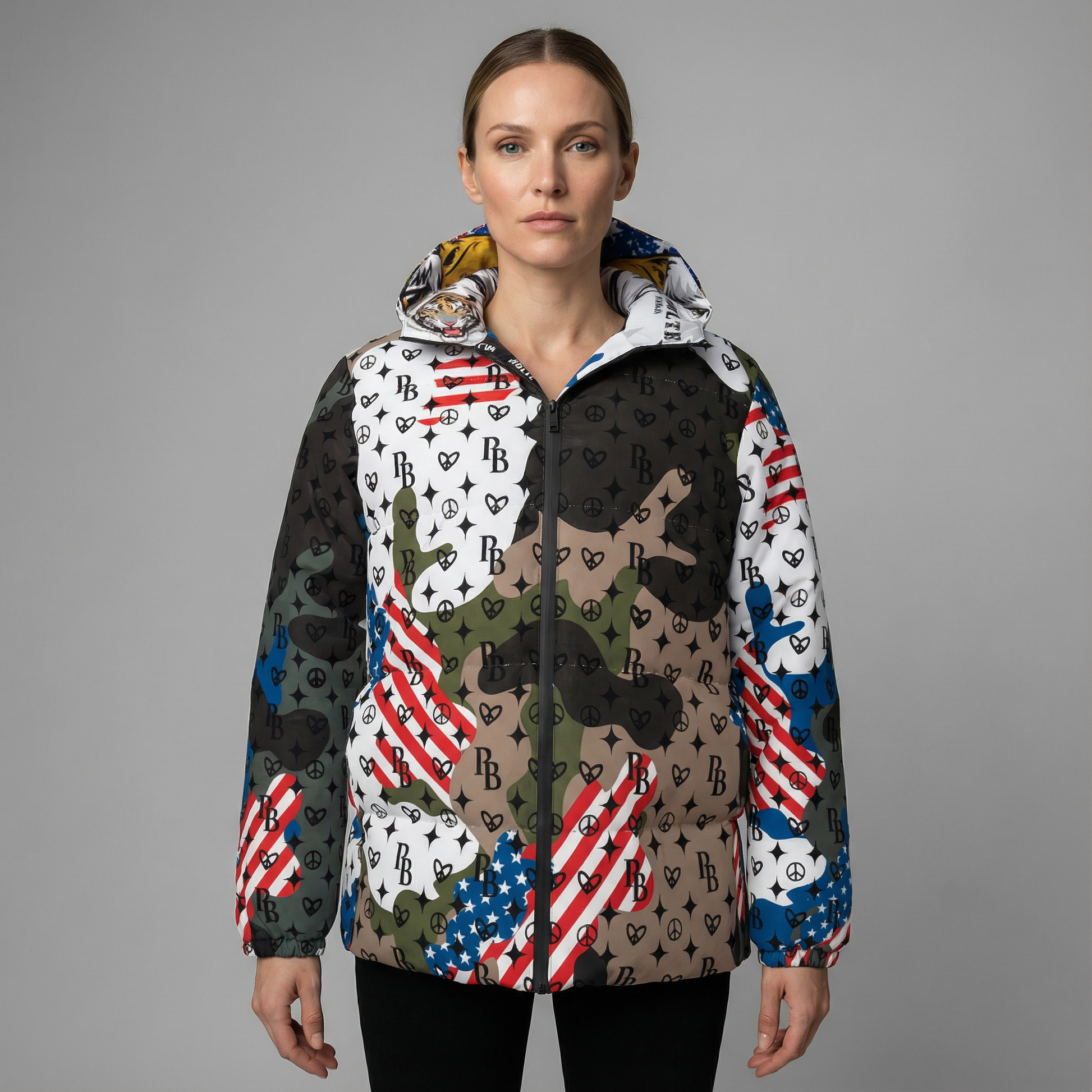 Die PIA BOLTE® Winter Jacket – USA Army kombiniert kraftvolles USA-Design mit urbanem PB-Camouflage und sorgt so für eine außergewöhnliche Winter-Silhouette. Stars, Stripes, Camouflage und PB-Signature-Icons schaffen einen Look, der sofort auffällt.